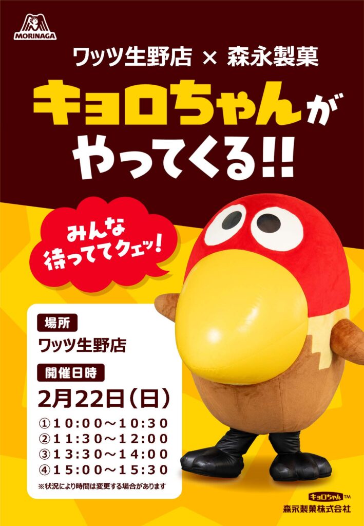 2月22日 日曜日 ワッツ生野店にキョロちゃんがやってきます! ①10:00~10:30